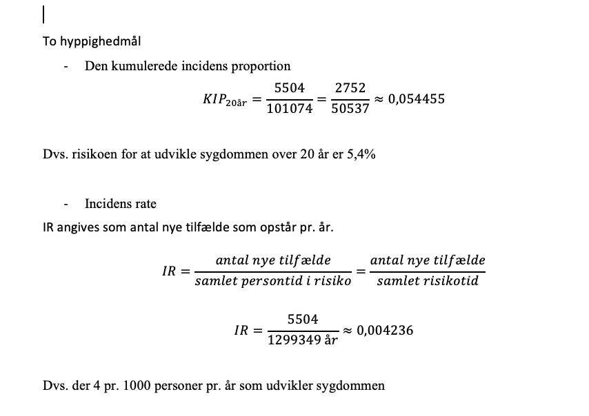 Beregn to relevante hyppighedsmål for studiet, og forklar betydningen af hyppighedsmålene?