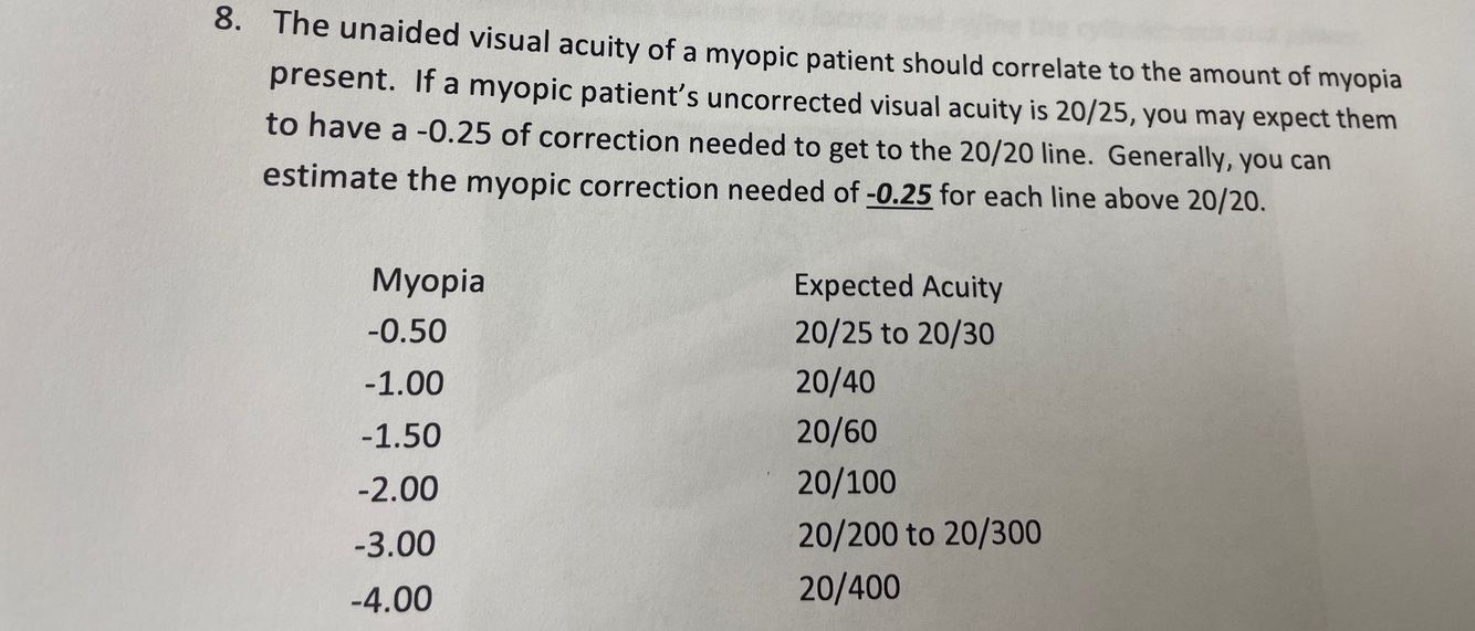 Retinoscopy, present glasses Rx, the patients last manifest refraction, auto refraction, estimating spheres or cylinder, keratometry readings