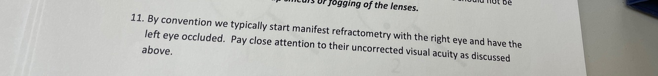 check to see that the patient is not over or under corrected in either eye. fog and balance technique.