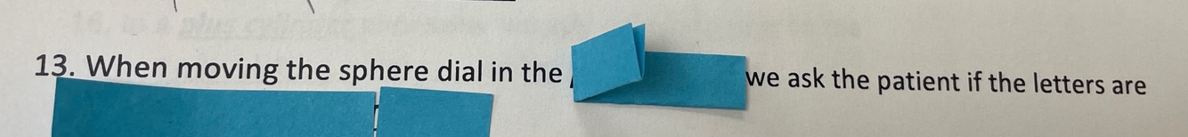 When moving the sphere dial in the __we ask the patient if the letters are _