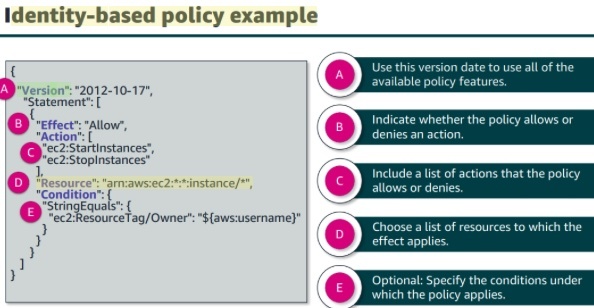 Exam - Policy “EAR” to remember, Effect-Action-Resource … know the resource can be a bucket or ???… know how to recognize the EAR from JSON for the exam but don’t need to write JSON
