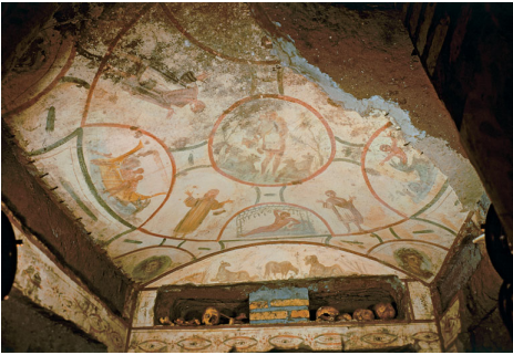 * Mohammed returns from a triumphant battle, goes to the Kaaba & removes all pagan idols, while preseving the cubical structure & dedicating it to God. Thus, no imagery is used in religious context instead they use geometric designs & scrolling vines known as arabesques.