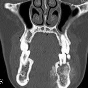 A patient underwent radiation therapy, what is likely to be seen on an x-ray or what is associated with radiation therapy?