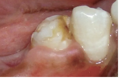 Mom came into the office and said the child had had the first molar extracted before the eruption of the premolar. Based on the following image, what is the likely cause for this discoloration?