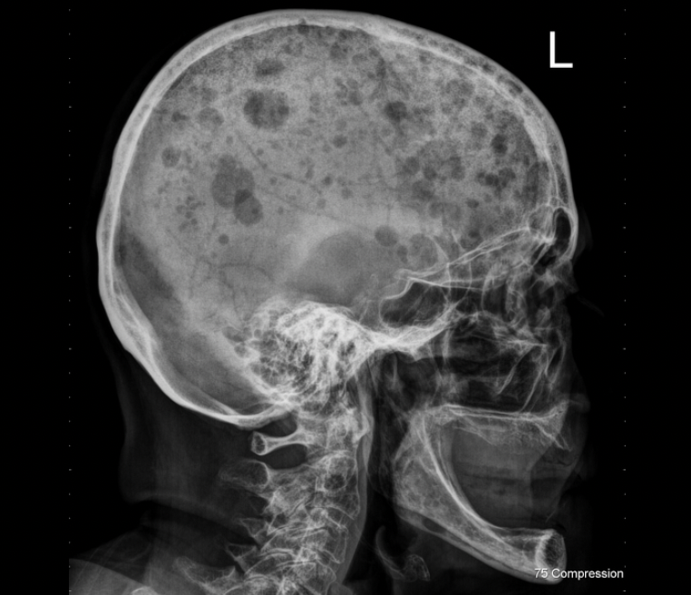X-ray of skull shows these punched out lesions. The patient is 70 years old, what is the likely diagnosis?
