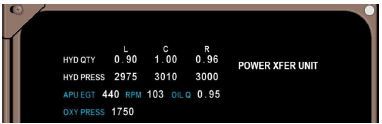757/767: The hydraulic quantity for each hydraulic system is displayed: