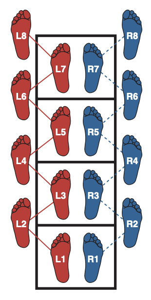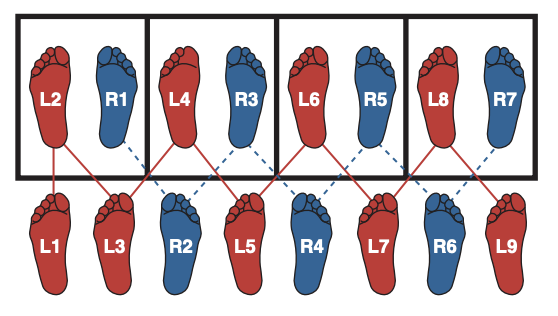 One-Ins, two-ins, side shuffle, in-in-out-out, in-in-out (zigzag), and ali shuffle are all examples of what?