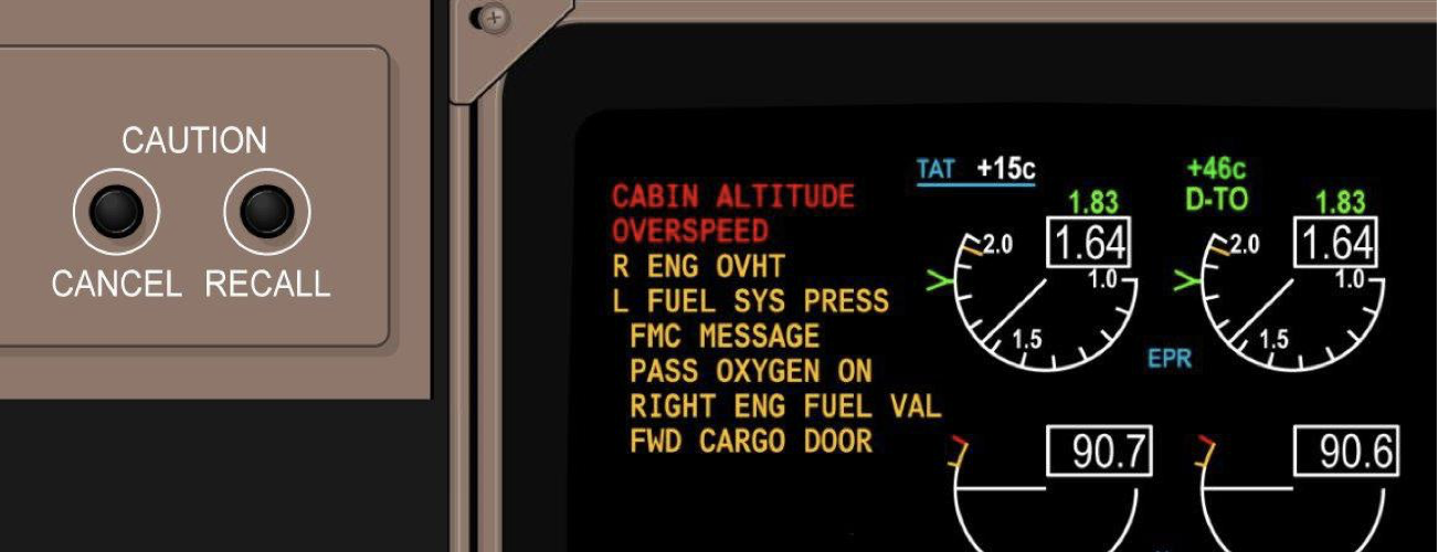 757/767: The cancel/recall buttons allow certain alert messages to be displayed or removed, including: