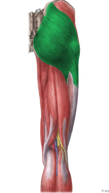 Insertion: Iliotibial tract of fascia lata; linea aspera and gluteal tuberosity of femur