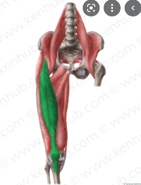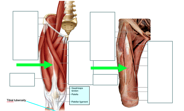 Insertion: Quadriceps tendon to patella and then patellar ligament to tibial tuberosity