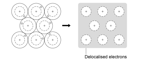 The electrons in the outer shell of metal atoms are delocalised and