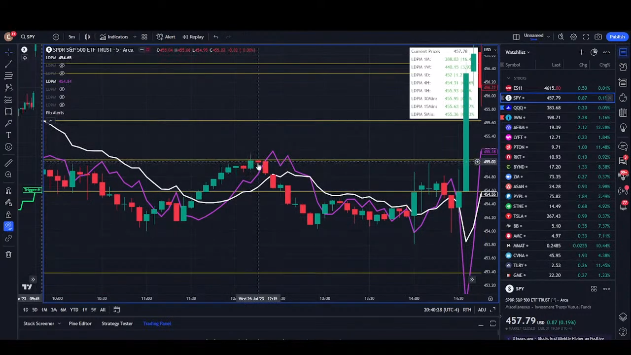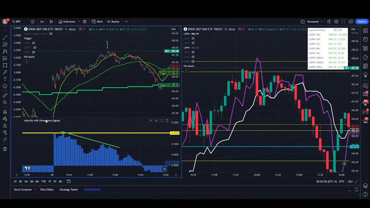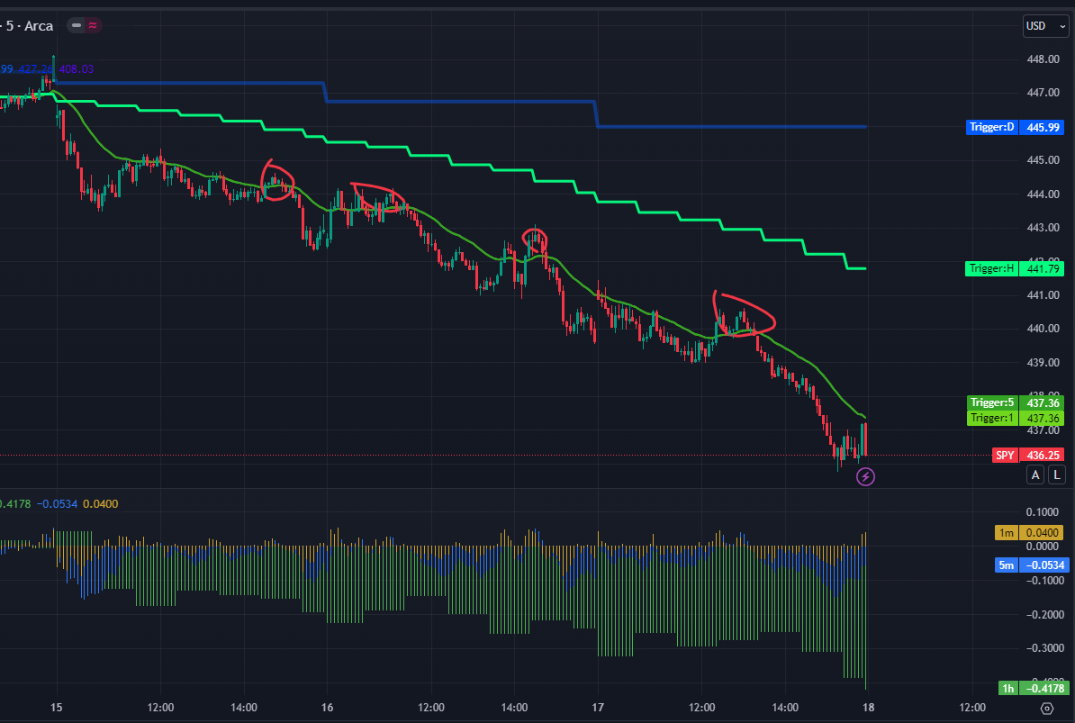 Yes, just want to clarify a couple things, and make sure we are on the same page. The lower timeframe trigger has to be above the next higher timeframe trigger, never cross below. So 1 min has to be above 5 min, or 5 min above hourly, or hourly above daily. It is not the setup I am talking about if the hourly crosses below the daily. The next thing is velocity, the trampoline trigger, the trigger I am using as my entry, needs to have positive velo
