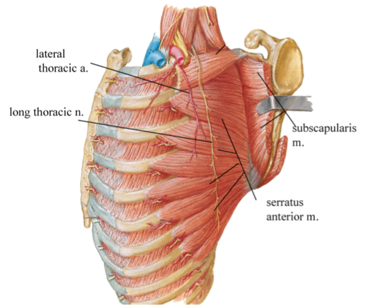 The axillary nerve and posterior humeral circumflex artery as they pass through the quadrangular space.