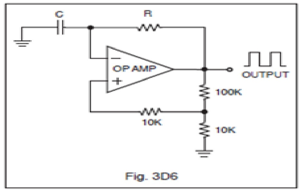 In the op-amp oscillator circuit shown in Figure 3D6, what would be the most noticeable effect if the capacitance of C were suddenly doubled?