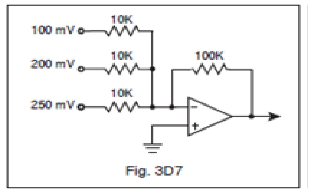 Given the combined DC input voltages, what would the output voltage be in the circuit shown in Figure 3D7?