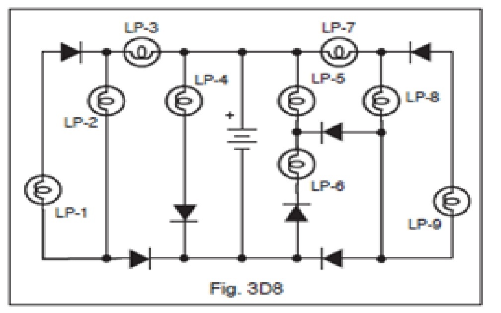 Which lamps would be lit in the circuit shown in Figure 3D8?