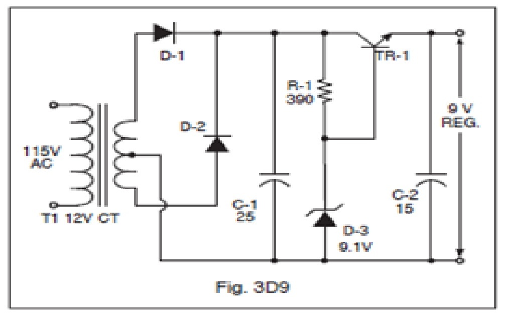 In Figure 3D9, determine if there is a problem with this regulated power supply and identify the problem.