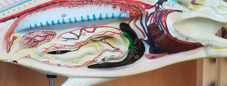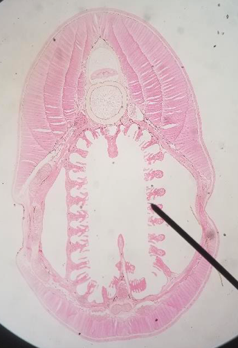 Pyloric cecae are #16 / #17 above bottom of the liver