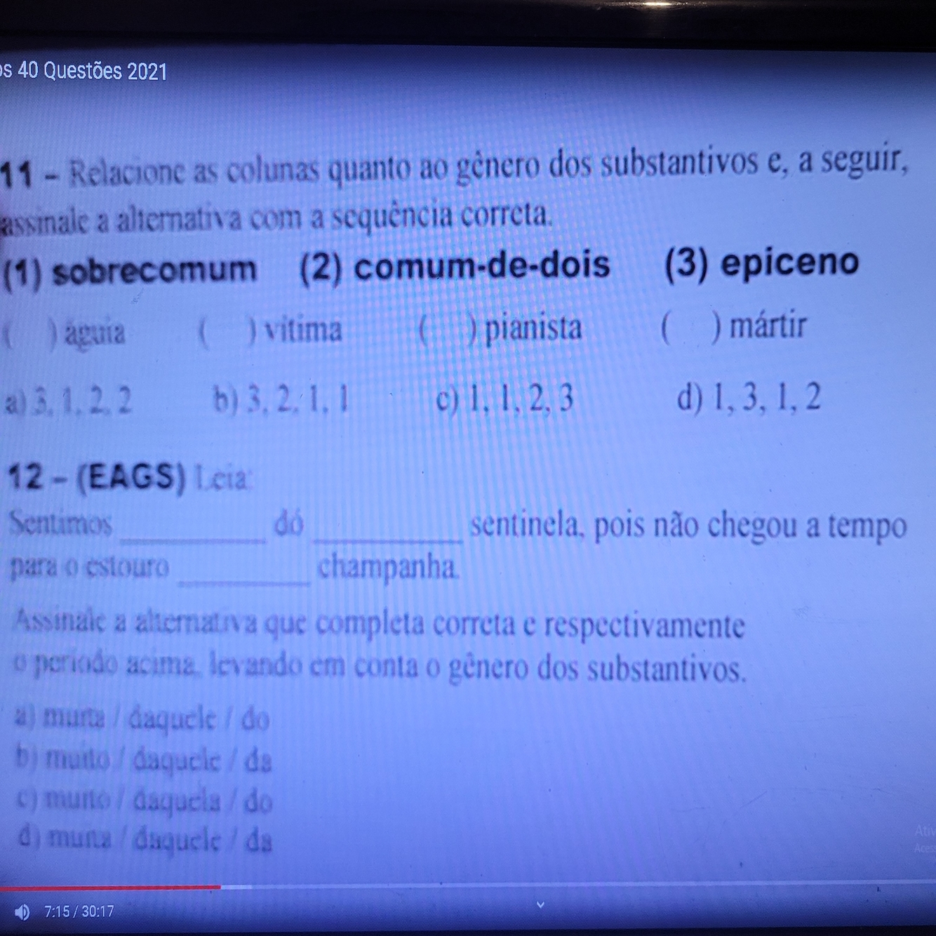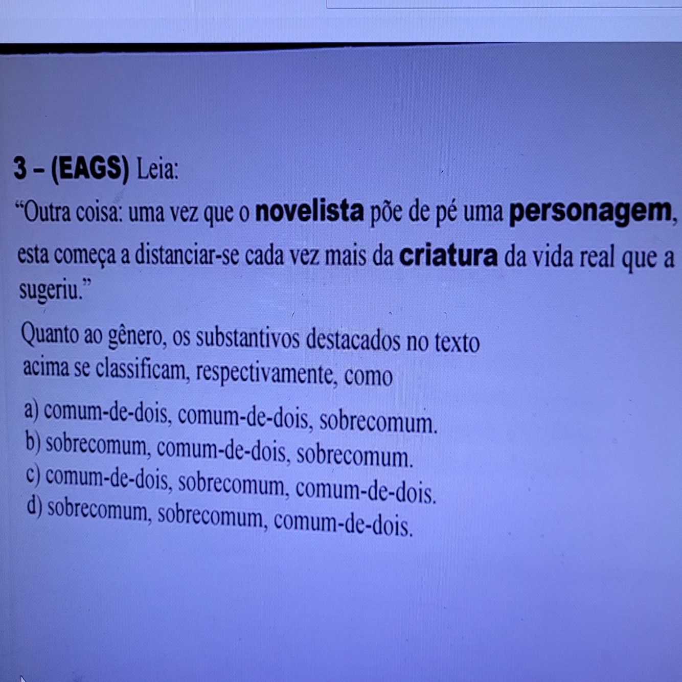 Quais as classificações possiveis de um substantivo de gênero uniforme?