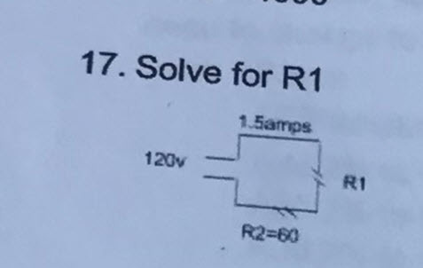 120V / 1.5A = R TOTAL (80), SUBTRACT R TOTAL (80) FROM R2 (60) = R1 (20)