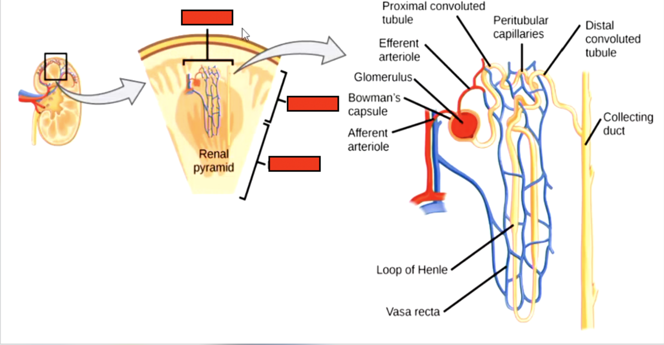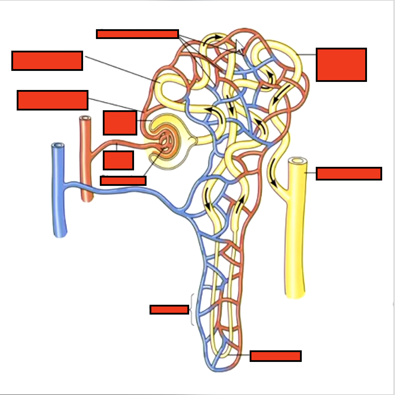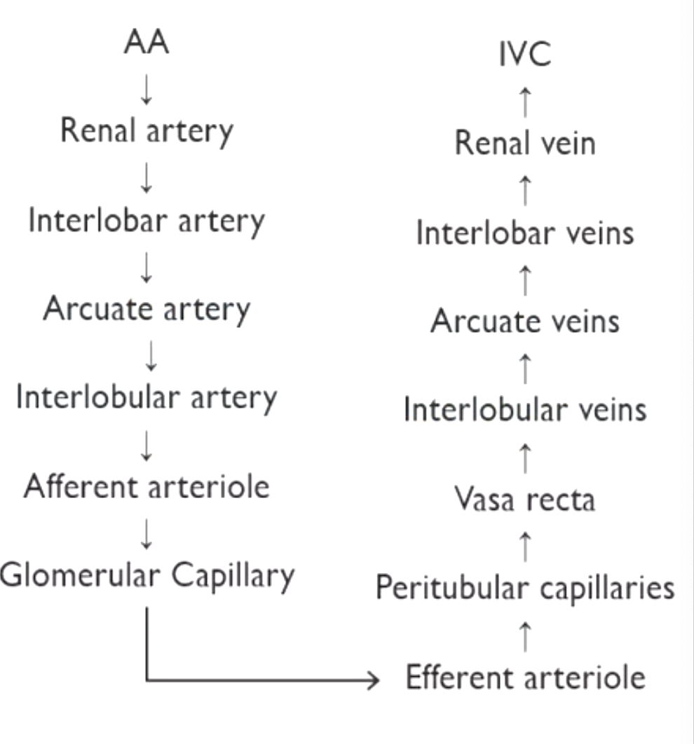 Label the blood flow in the kidney after glomerular capillary: