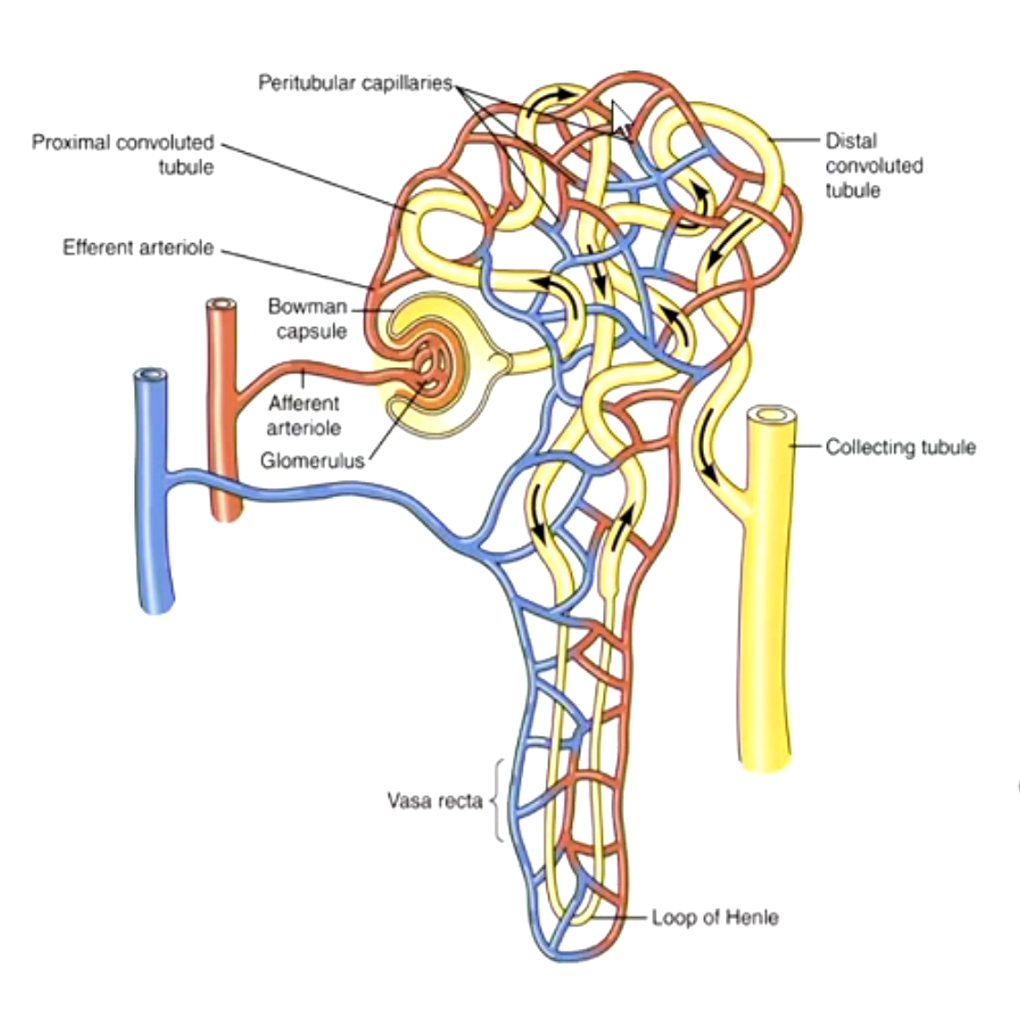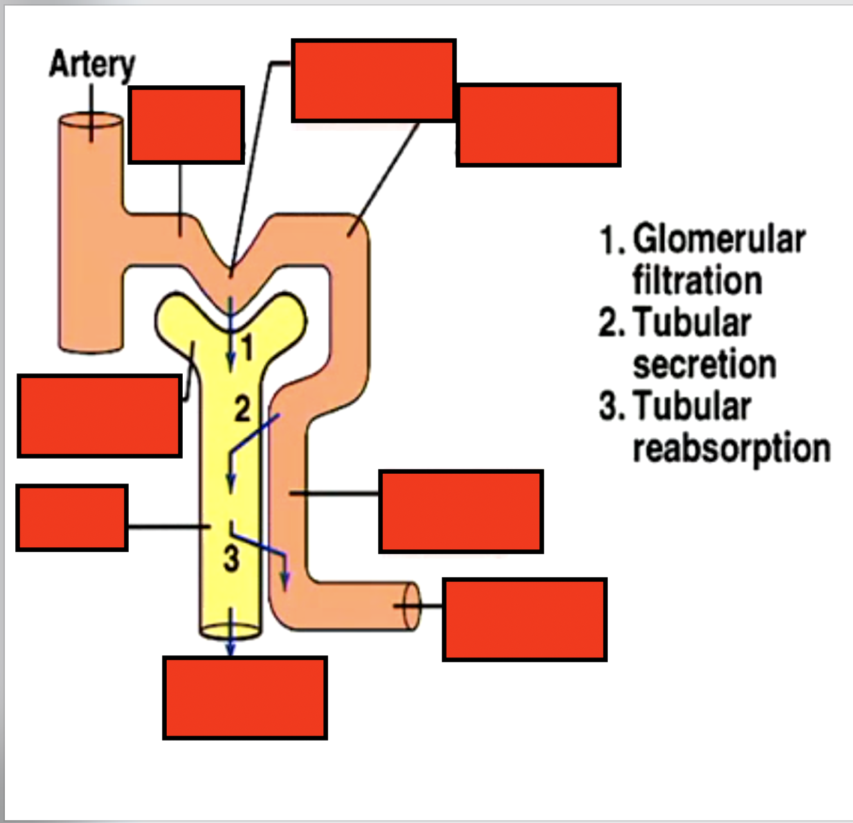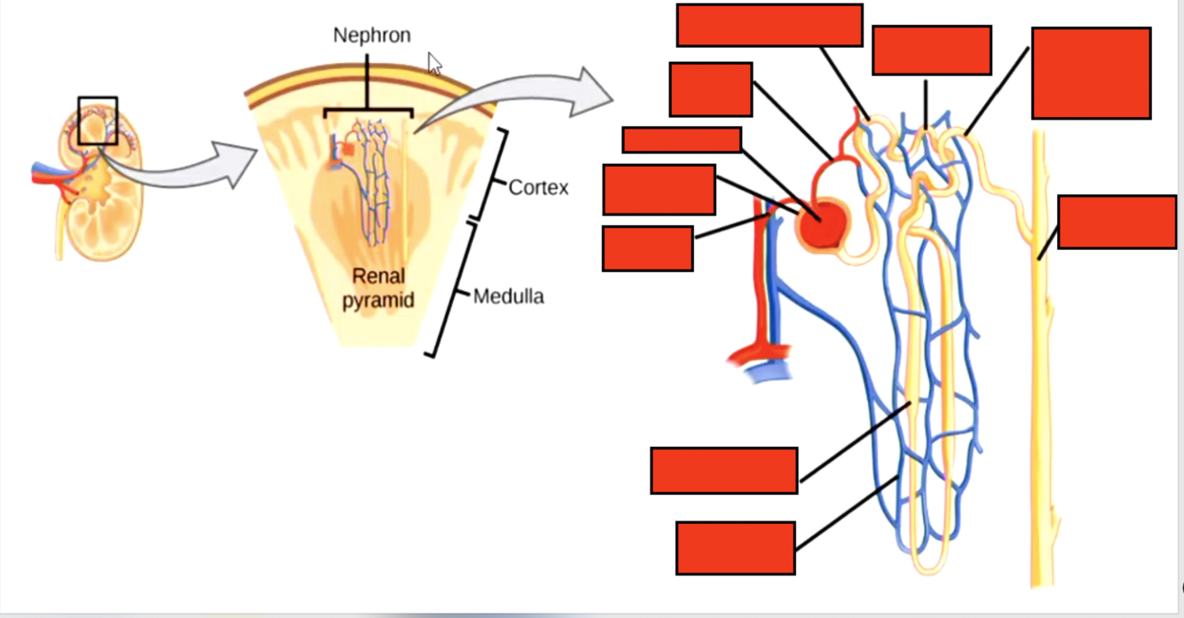 Label the blood flow in the kidney after glomerular capillary: