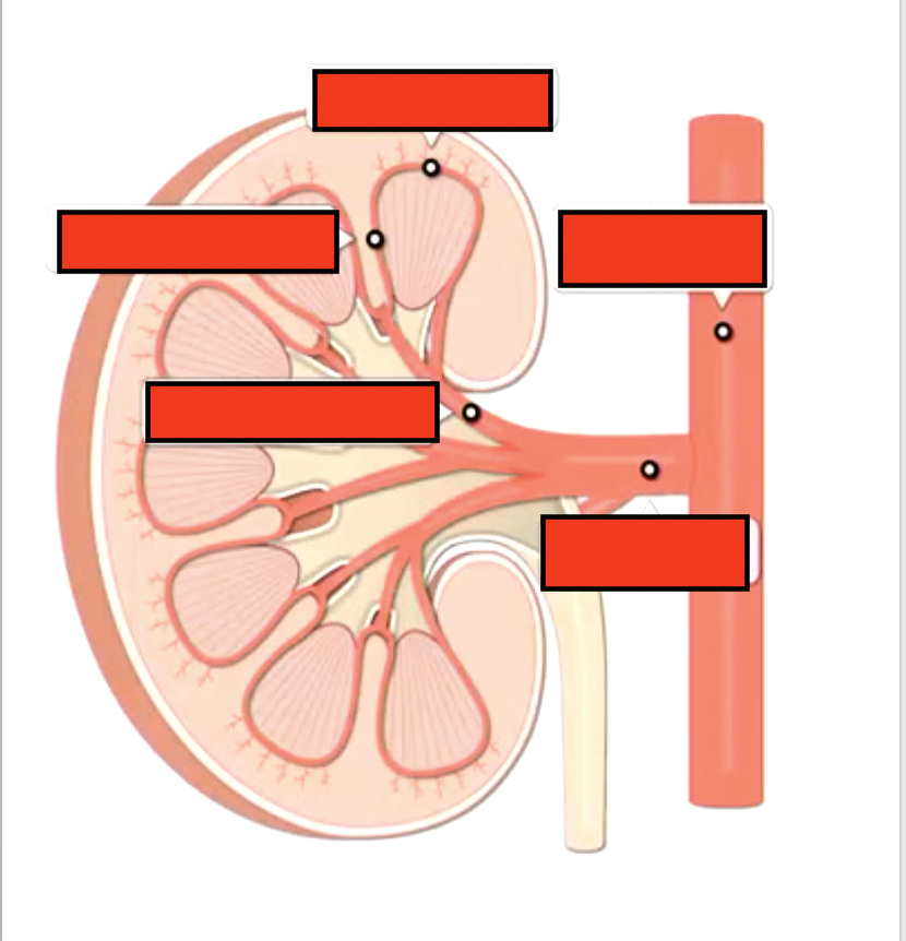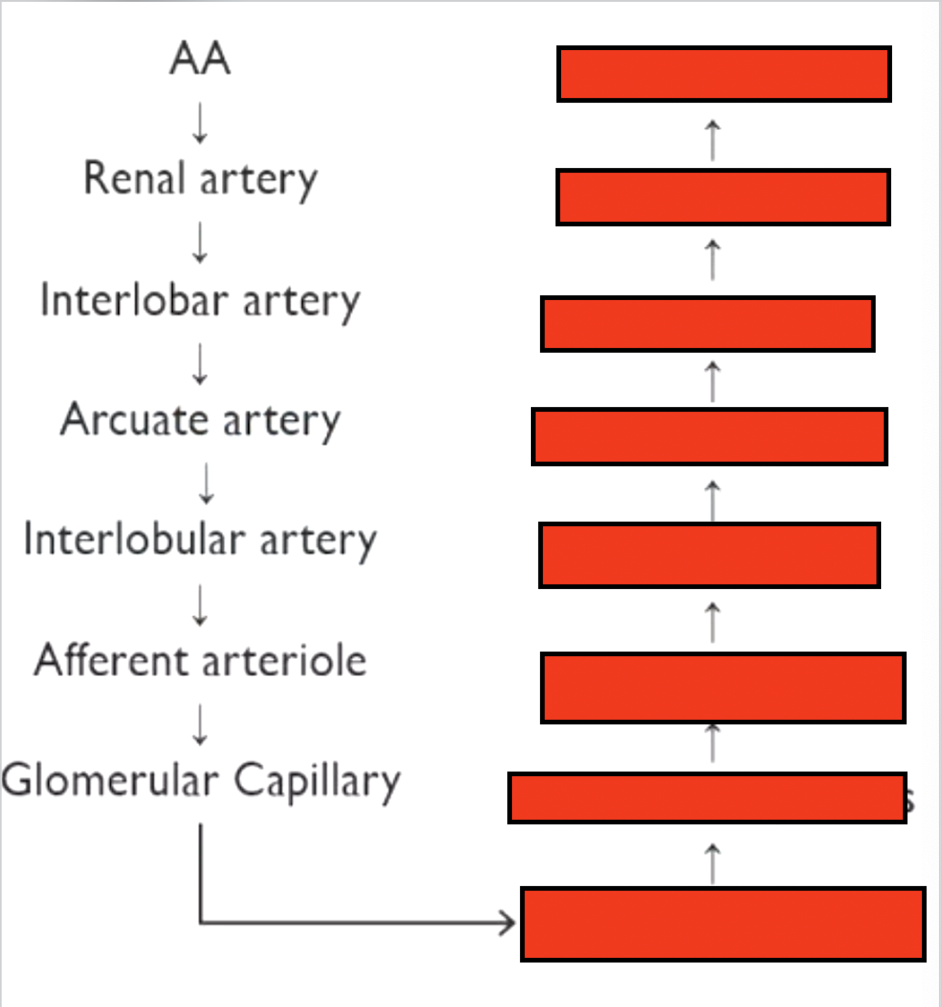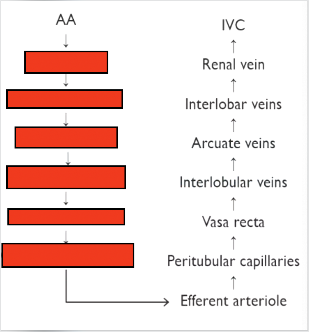 Label the blood flow of the kidneys up to efferent arteriole: