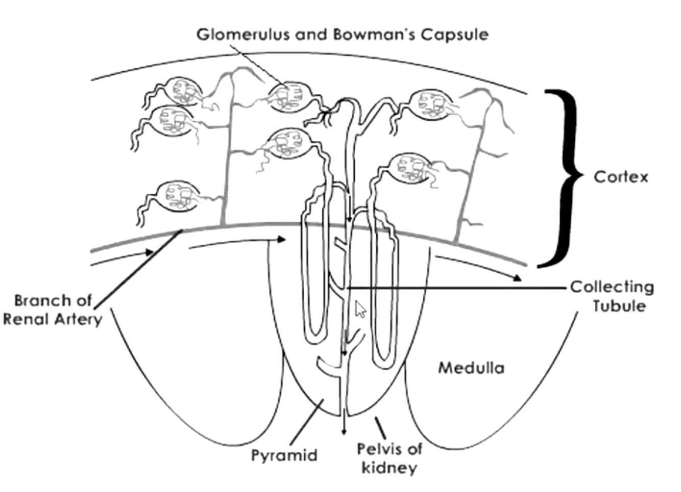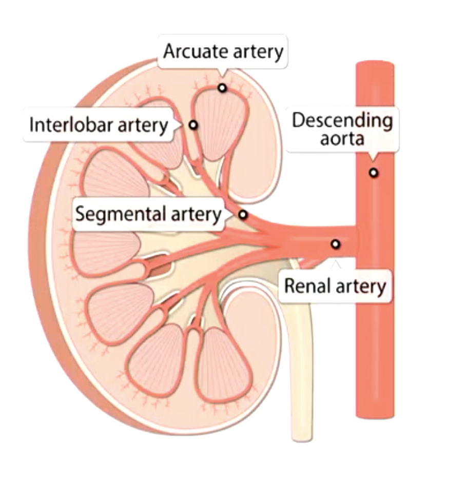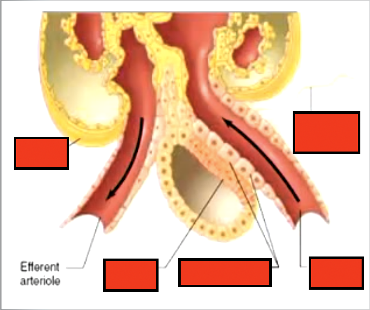Label the blood flow of the kidneys up to efferent arteriole: