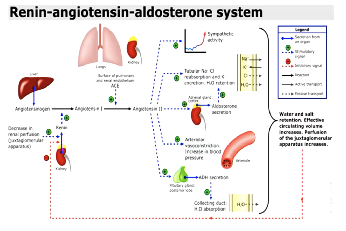 -LOW BP = LESS DISTENDED WALLS = RENIN RELEASE