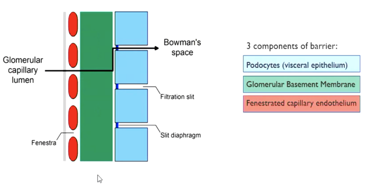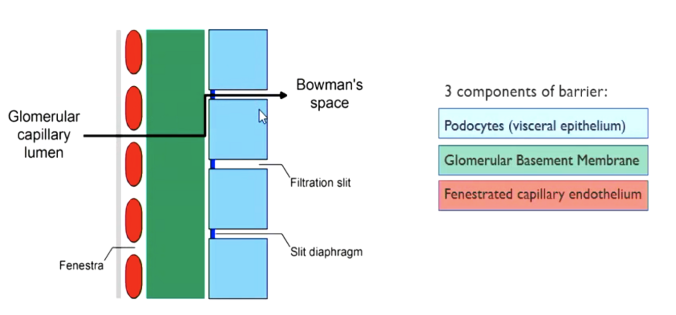 What are the 3 components of the renal filtration barrier?