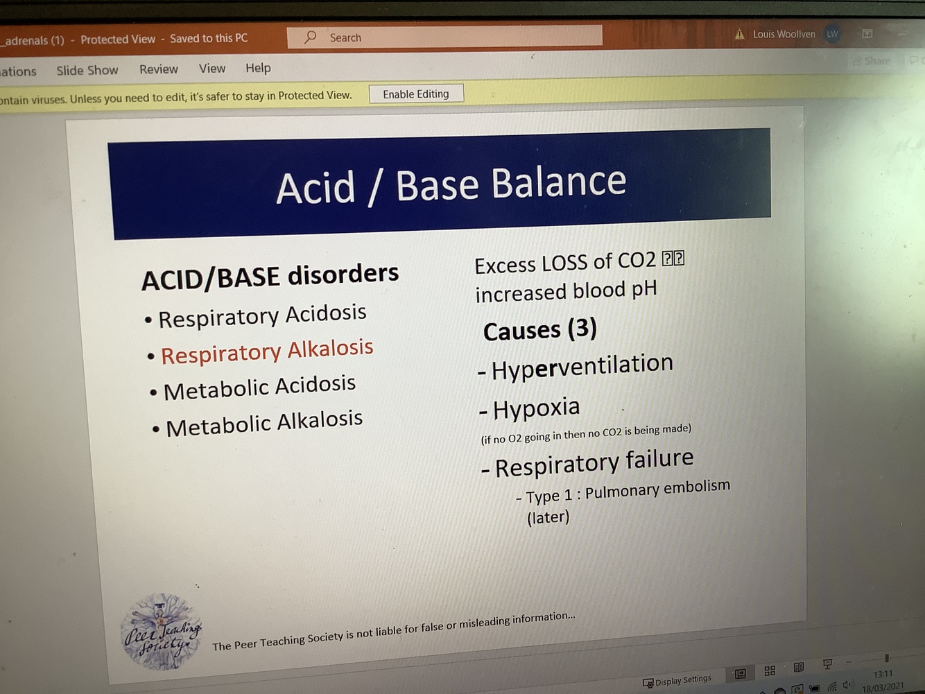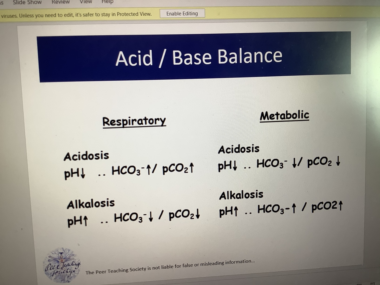 What happens to pH, HCO3- and pCO2 levels in respiratory and metabolic acidosis/alkalosis?