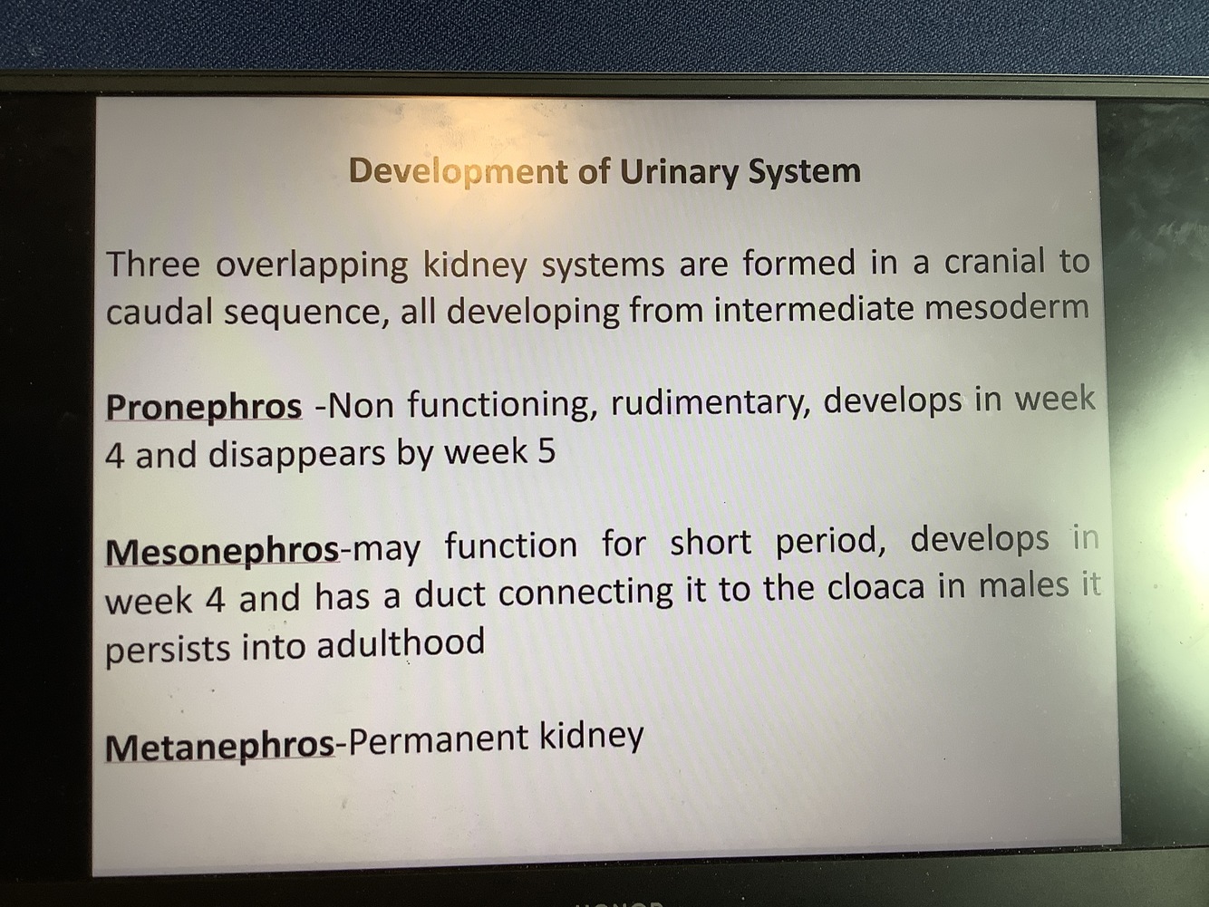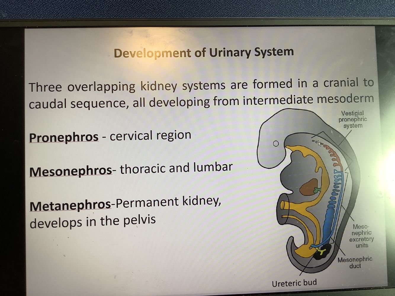What are the three overlapping kidney systems that develop from the intermediate mesoderm? Where are they found?