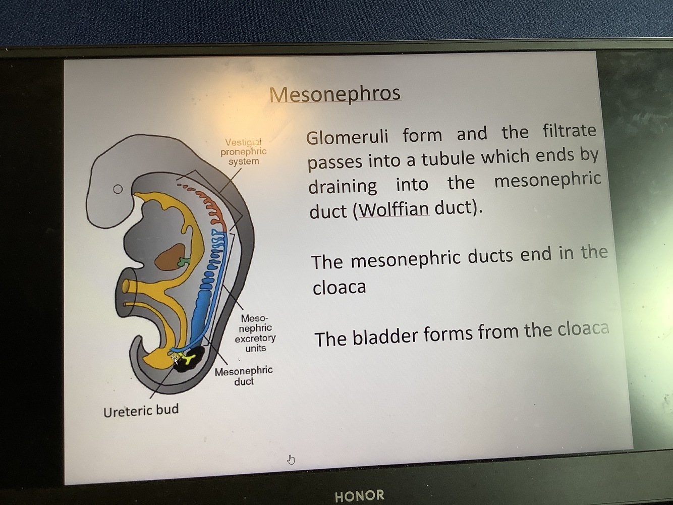 What does the mesonephros comprise? What does the duct form? Is this different in females?