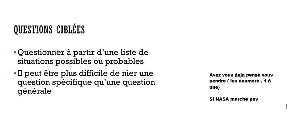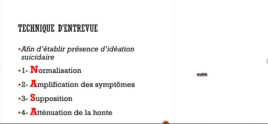 la première étape dans l’évaluation du risque suicidaire est )______