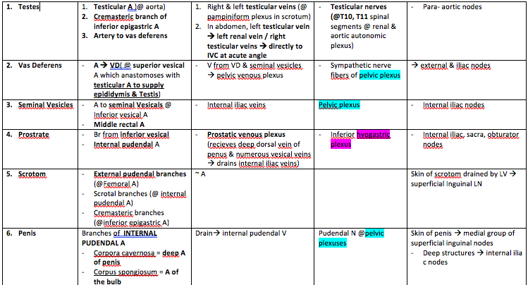 Identify the main vessels supplying the male reproductive organs