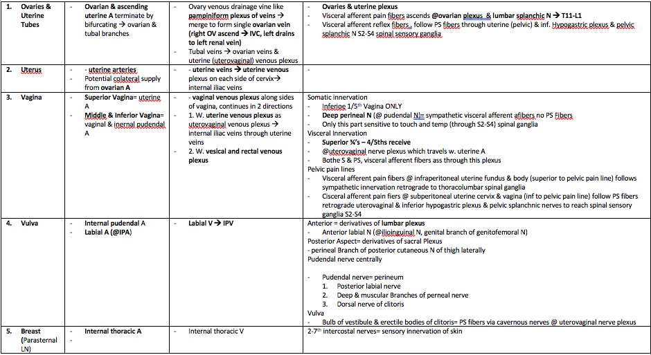 Identify the main vessels supplying the female reproductive organs