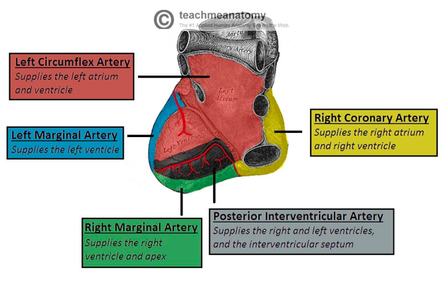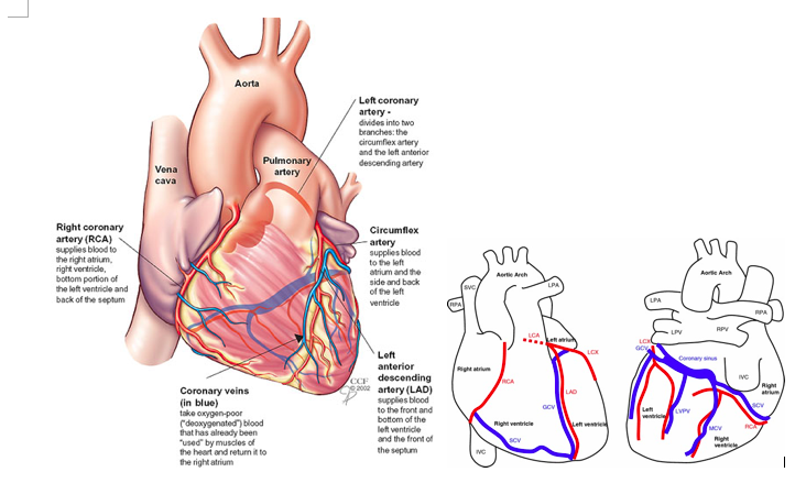 review the areas of the myocardium that are supplies by the major branches of the coronary arteries.