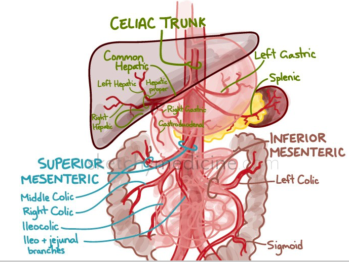 Summarise the GIT arterial supply.