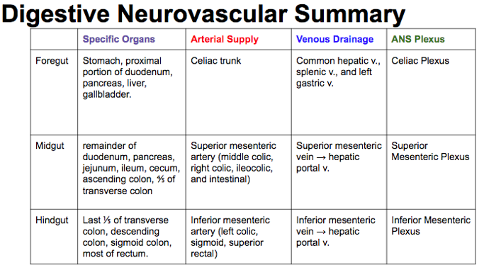 Summarise the digestive neurovascular supply