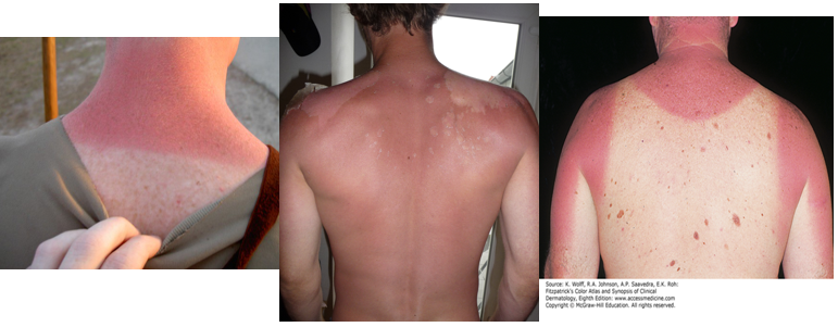 (c) Topical corticosteroids contraindicated for the treatment of sunburn. Blisters heal without scarring in 7 to 10 days. Scaling, desquamation, and tanning are noted four to seven days after exposure.