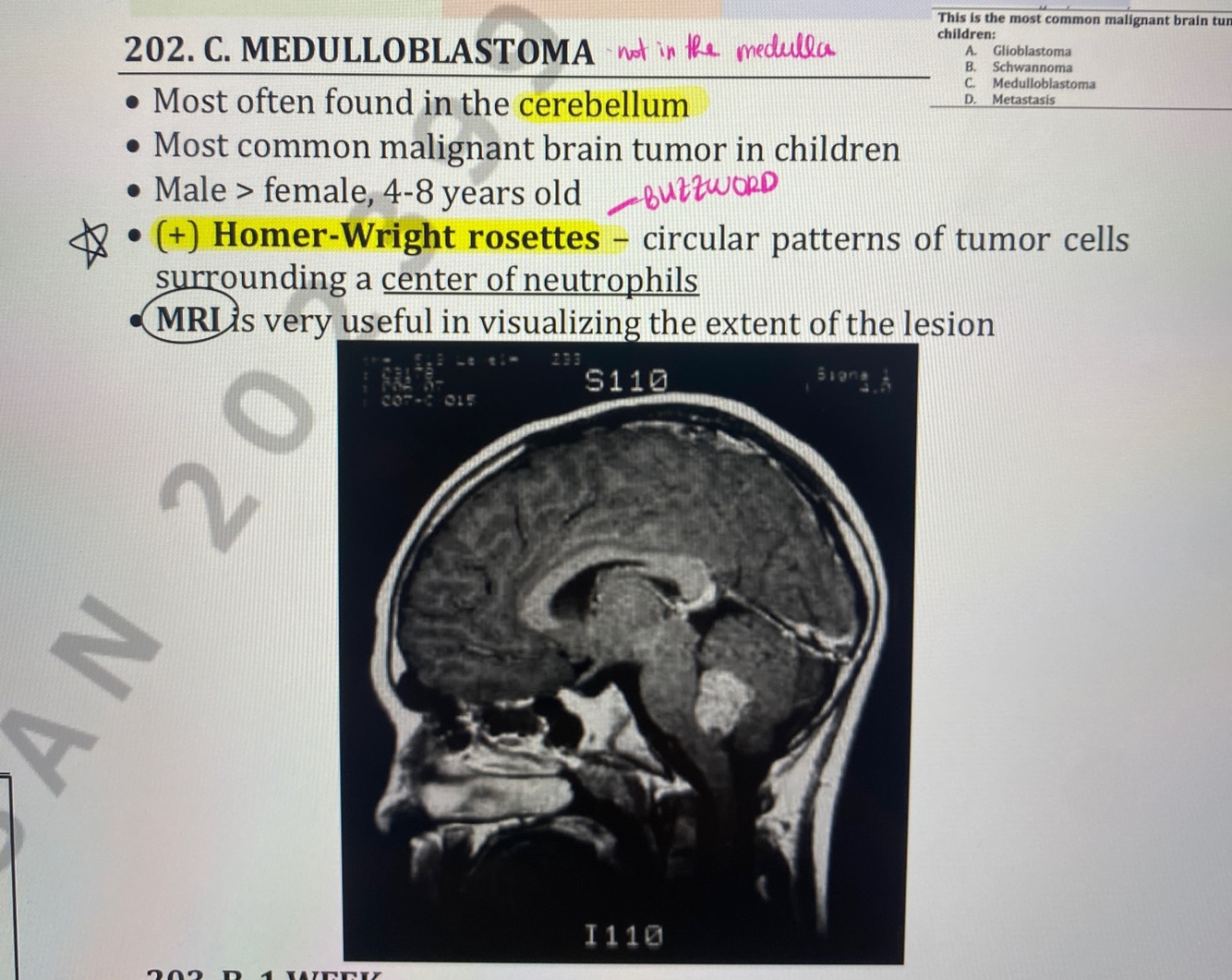 Buzzword for the most common MALIGNANT brain tumor in Children