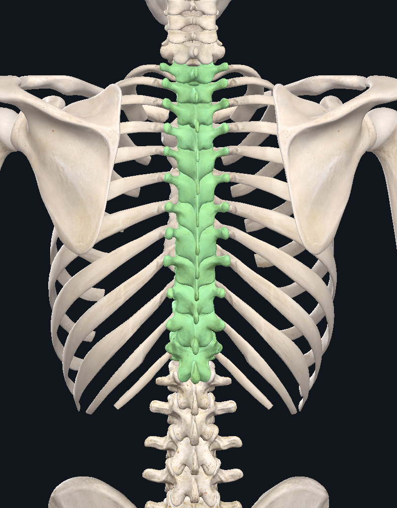 spinous processes of thoracic vertebrae