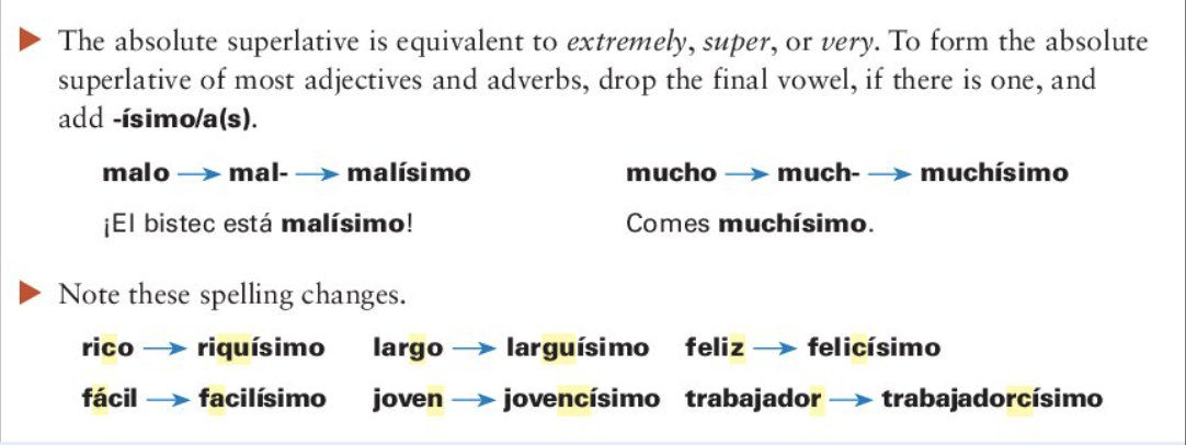How do you form the absolute (extremely, super, or very) superlative of most adjectives and adverbs