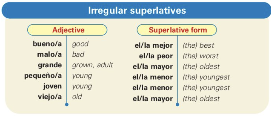 What are the superlative forms of grande, pequeño/a, joven, and viejo/a