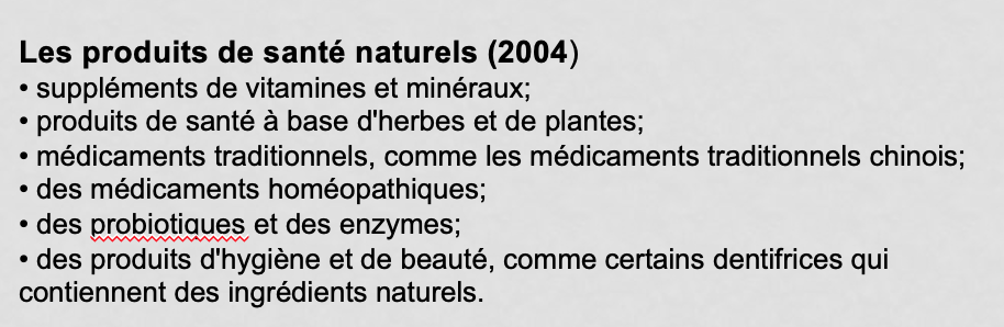 Quelles sont les catégorie qui rentre dans les PSN (produits de santé naturel) ?