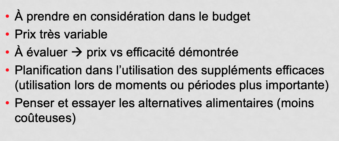 qu’est ce qu’il faut prendre en considération concernant le cout des suppléments alimentaire?