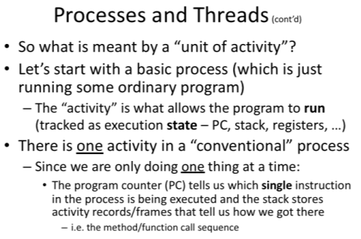 What is meant bu a thread being a “unit of activity” alone?