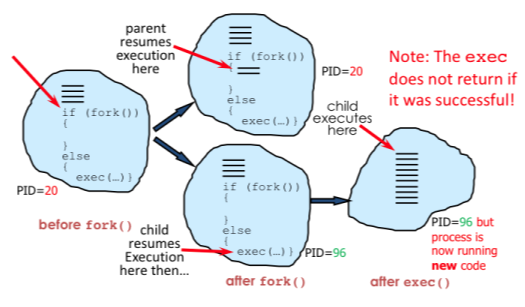 The child process then calls to execute a different program
