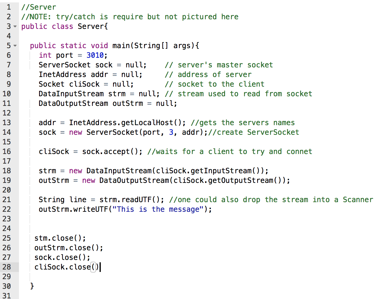 What is the general server code for a Socket Stream?