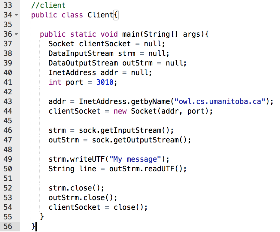 What is the general Client Code for a Socket Stream?